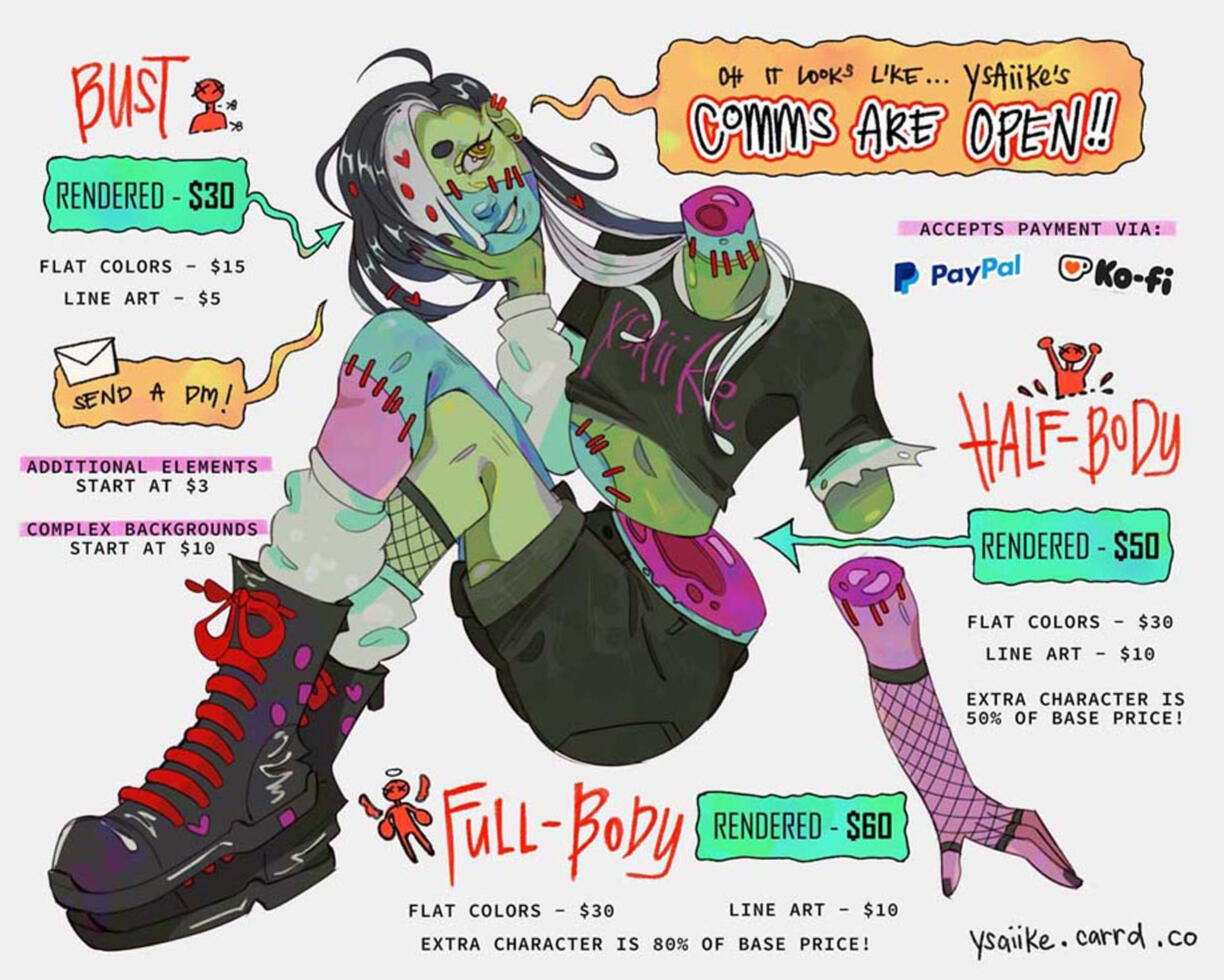 2. To request a commission, please DM me through Twitter, Instagram (@ysaiike) or Discord (brvte#2200)